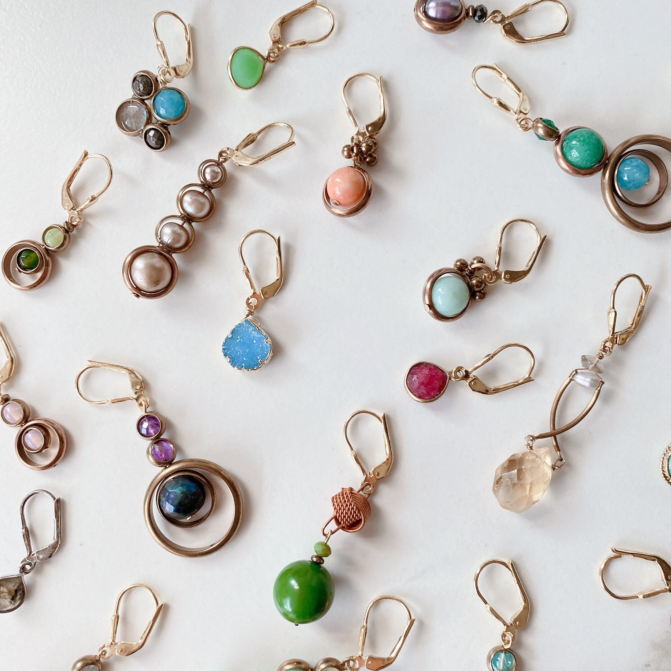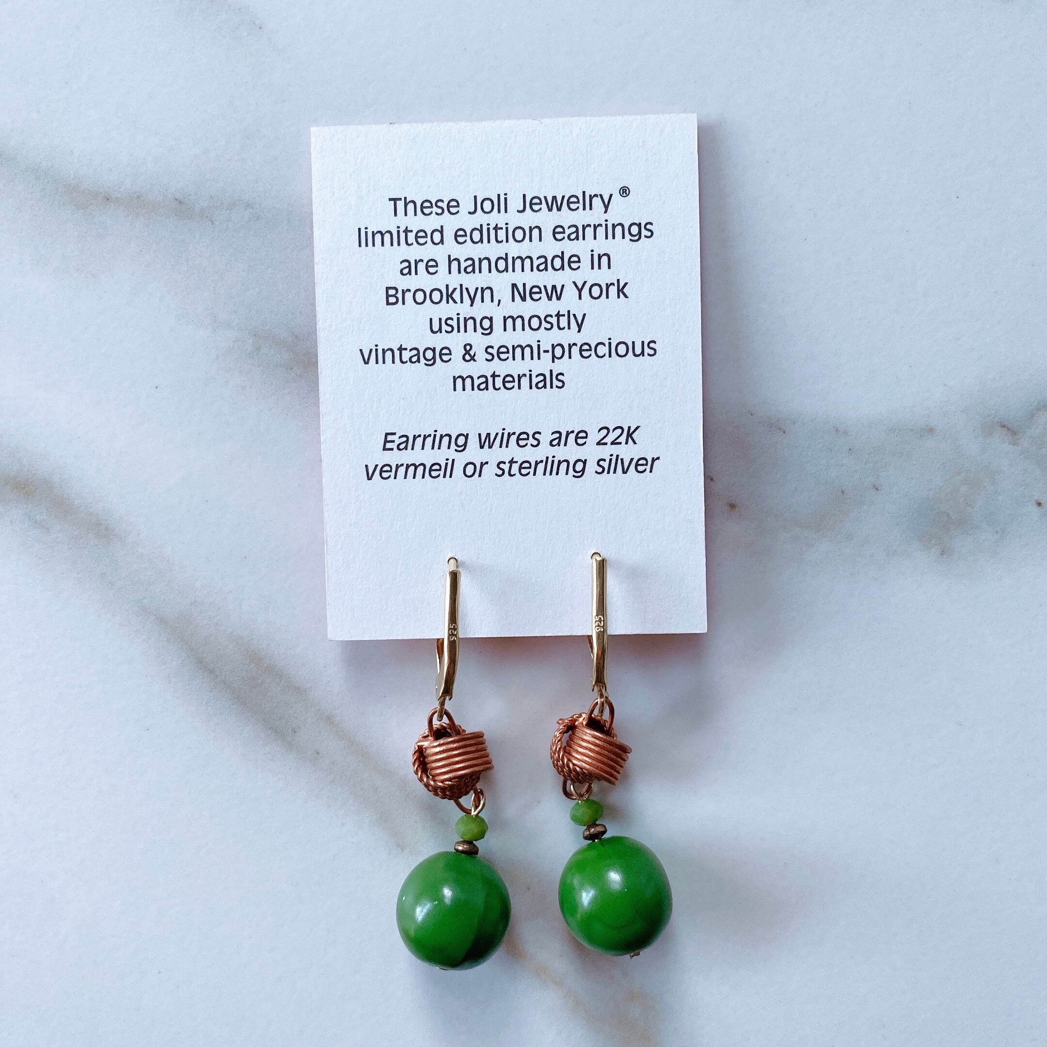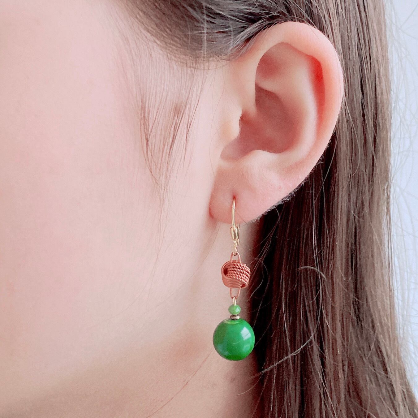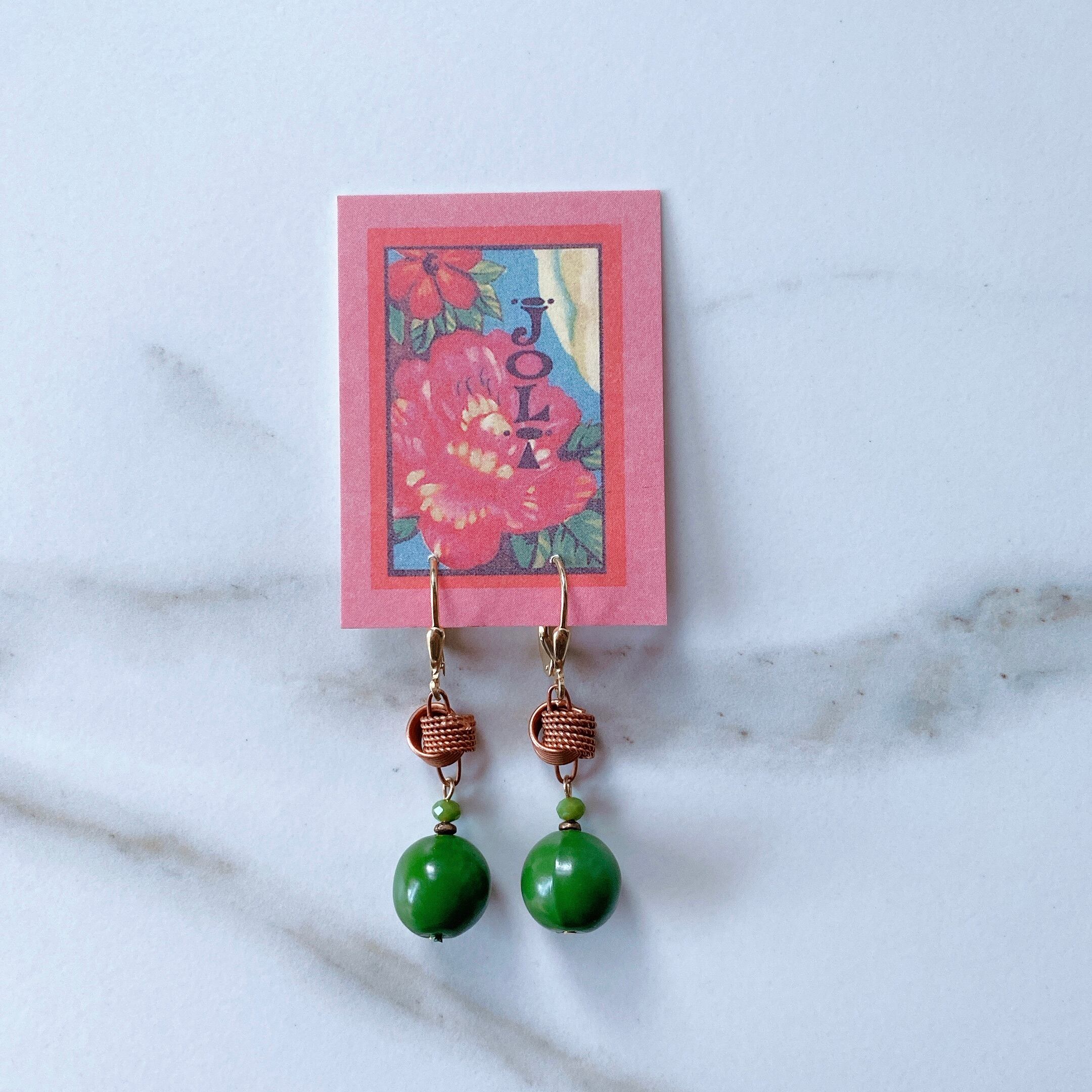 ジョリ・ジュエリーのビンテージ材料を生かしたレトロ感あふれるイヤリング。