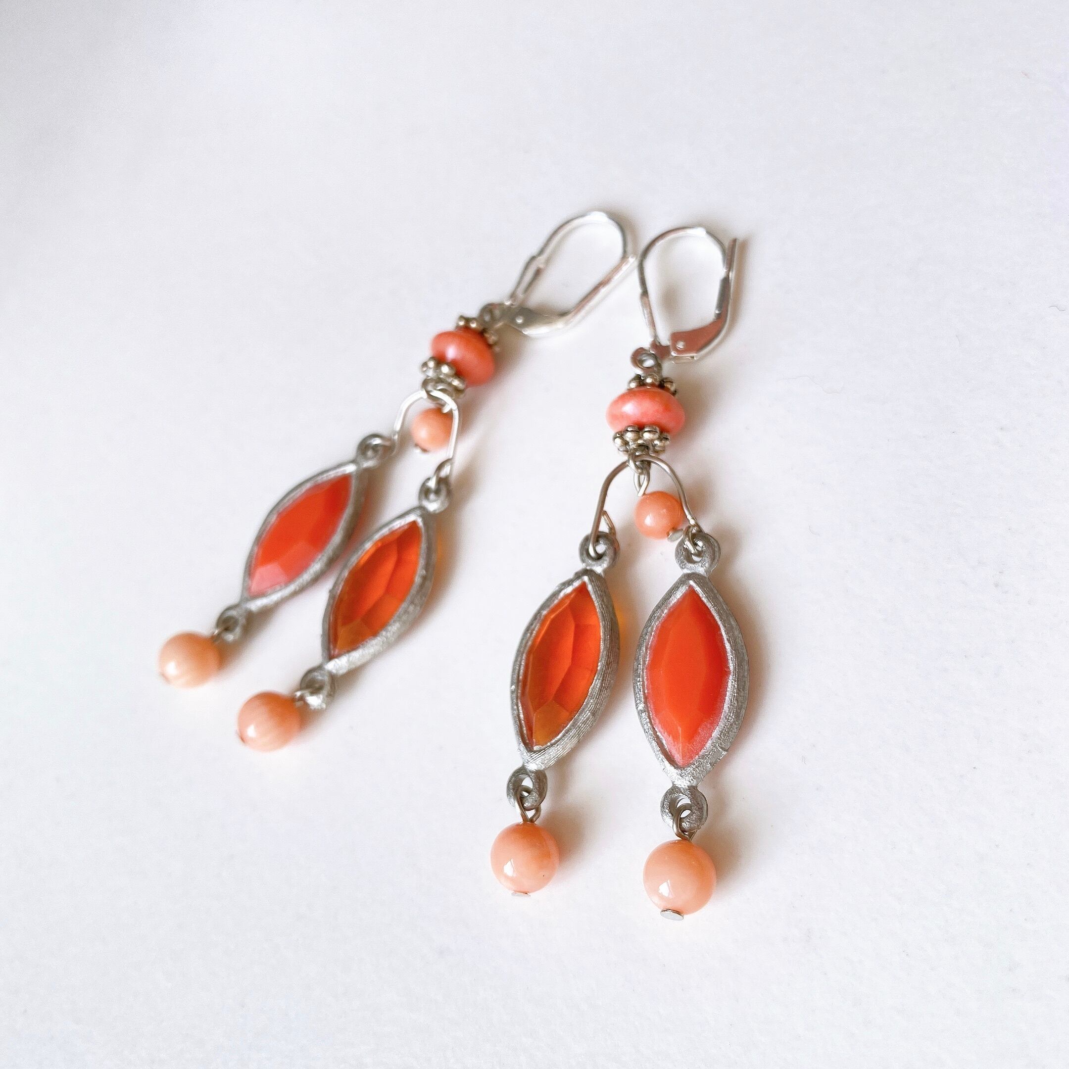 ジョリ・ジュエリーによるオレンジを基本とした明るい色のレヴァーバックイヤリング。