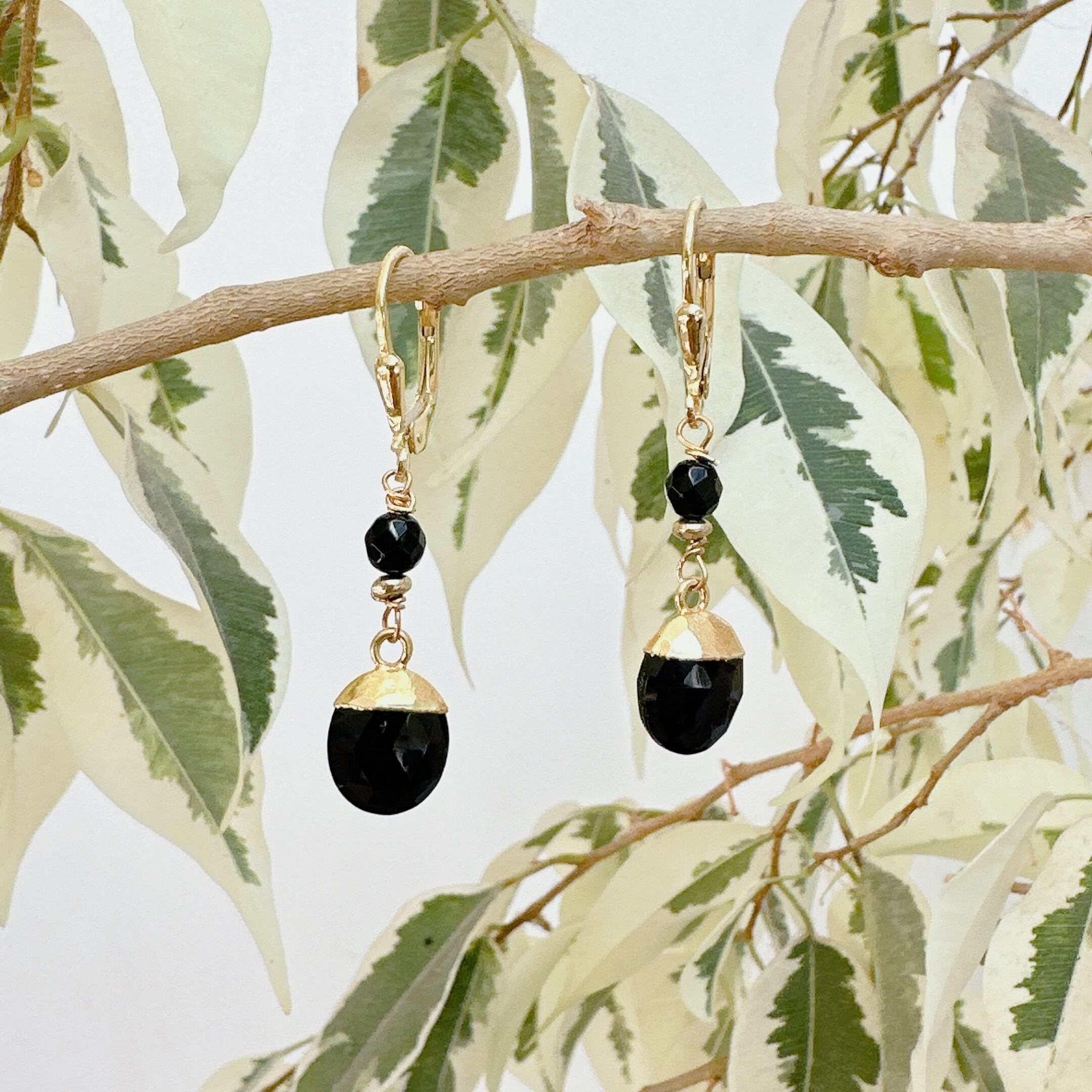 ジョリ・ジュエリーのジェムストーン(オニキス)を使用したシンプルなドロップイヤリング。